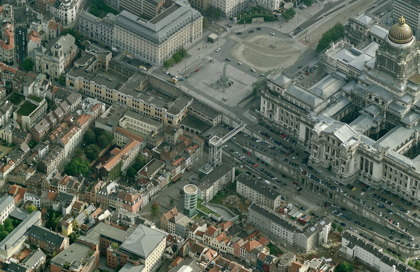 L’exemple que les Belges connaissent le mieux est celui qui relie, depuis le mois de juin 2002, le quartier des Marolles à la place Poelaert, à Bruxelles. Si l’idée est ancienne, comme souvent dans ce genre de projet, le rôle de l’architecte Patrice Neirinck (bureau AVA) a été déterminant, lui qui promouvait le concept dès le début des années ’90 |6| et a finalement été le maître d’œuvre du projet.